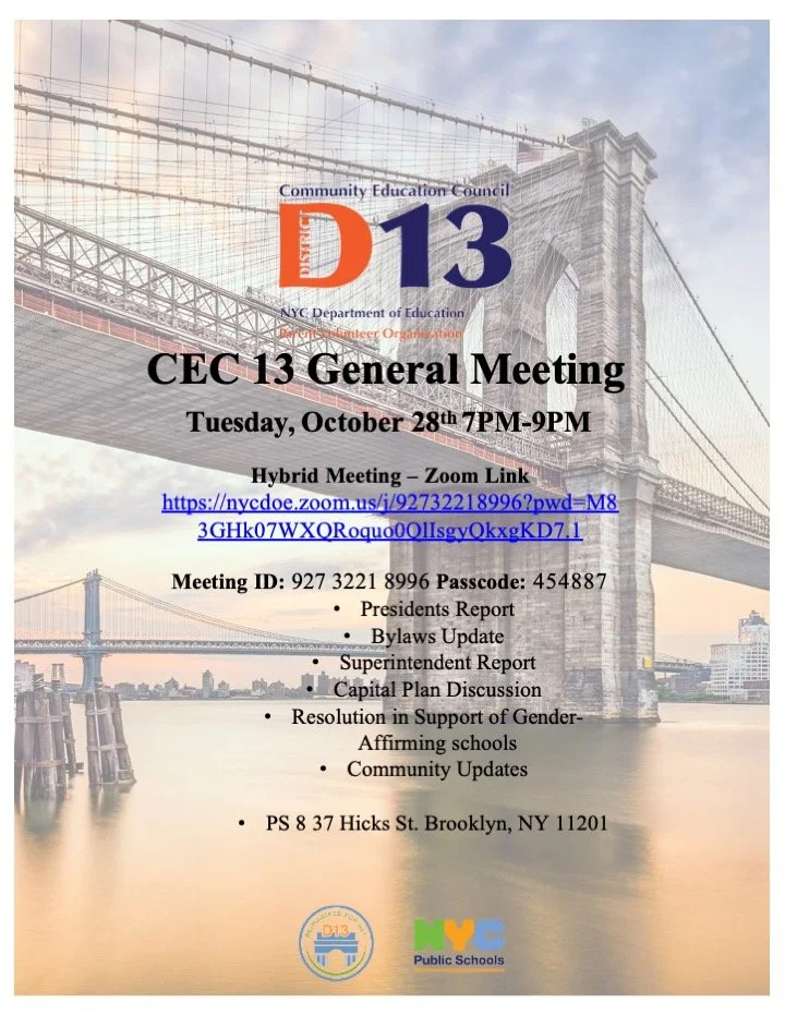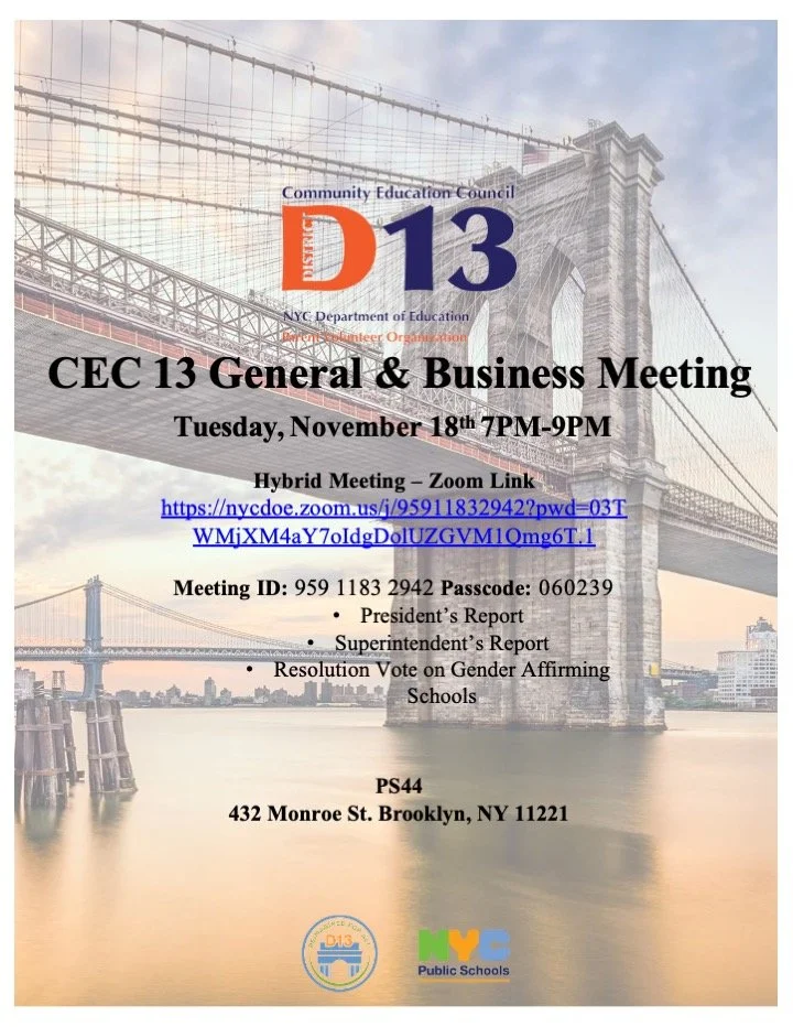 We are District 13’s voice to the DOE - advocating for our schools, striving for equity for all our children and celebrating the diversity and success of our community.